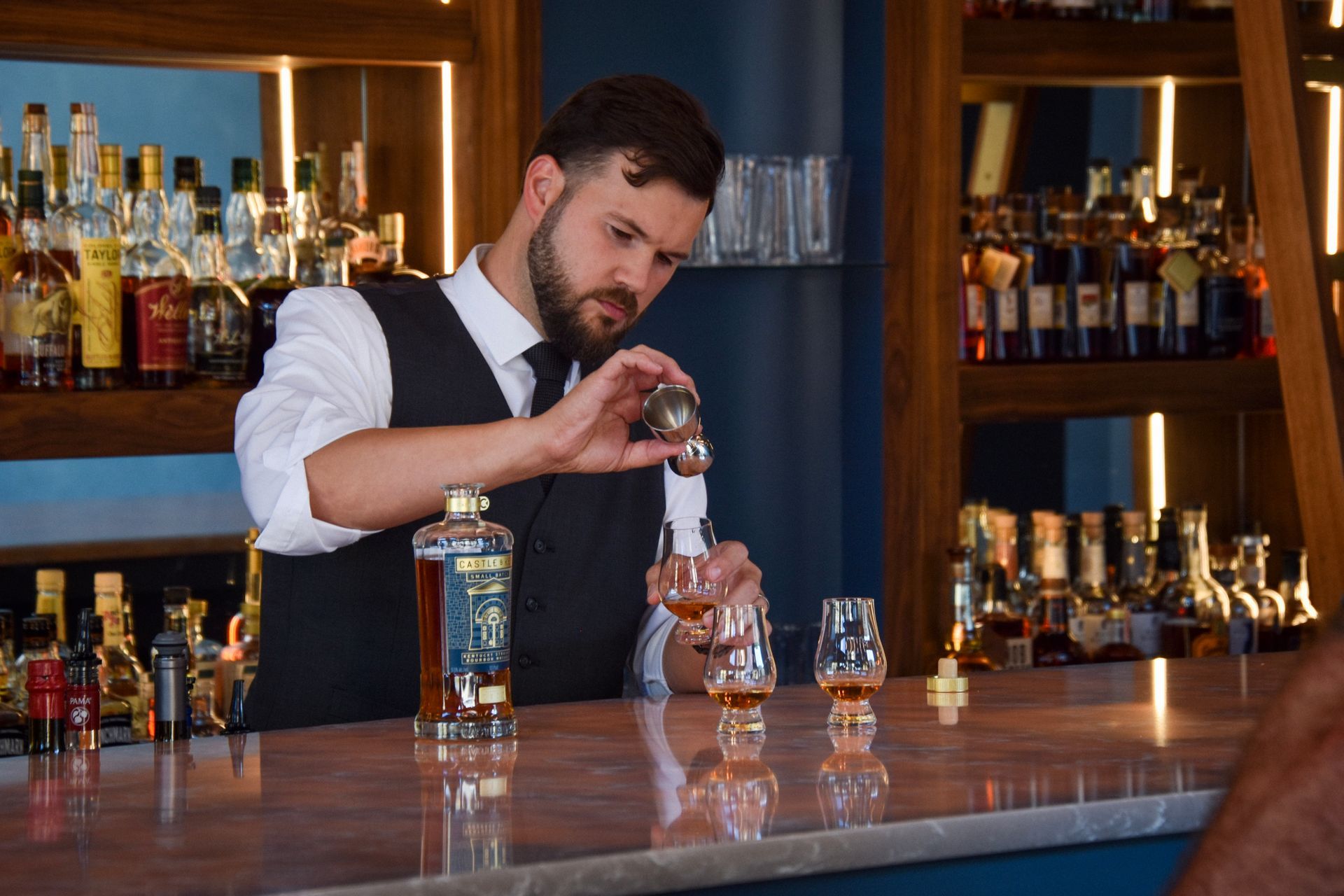 “It’s a nice, rich bourbon cocktail,” says Whitlow. “Usually, for a competition cocktail you go one of two ways: screaming in one direction or very balanced. This is very balanced.”