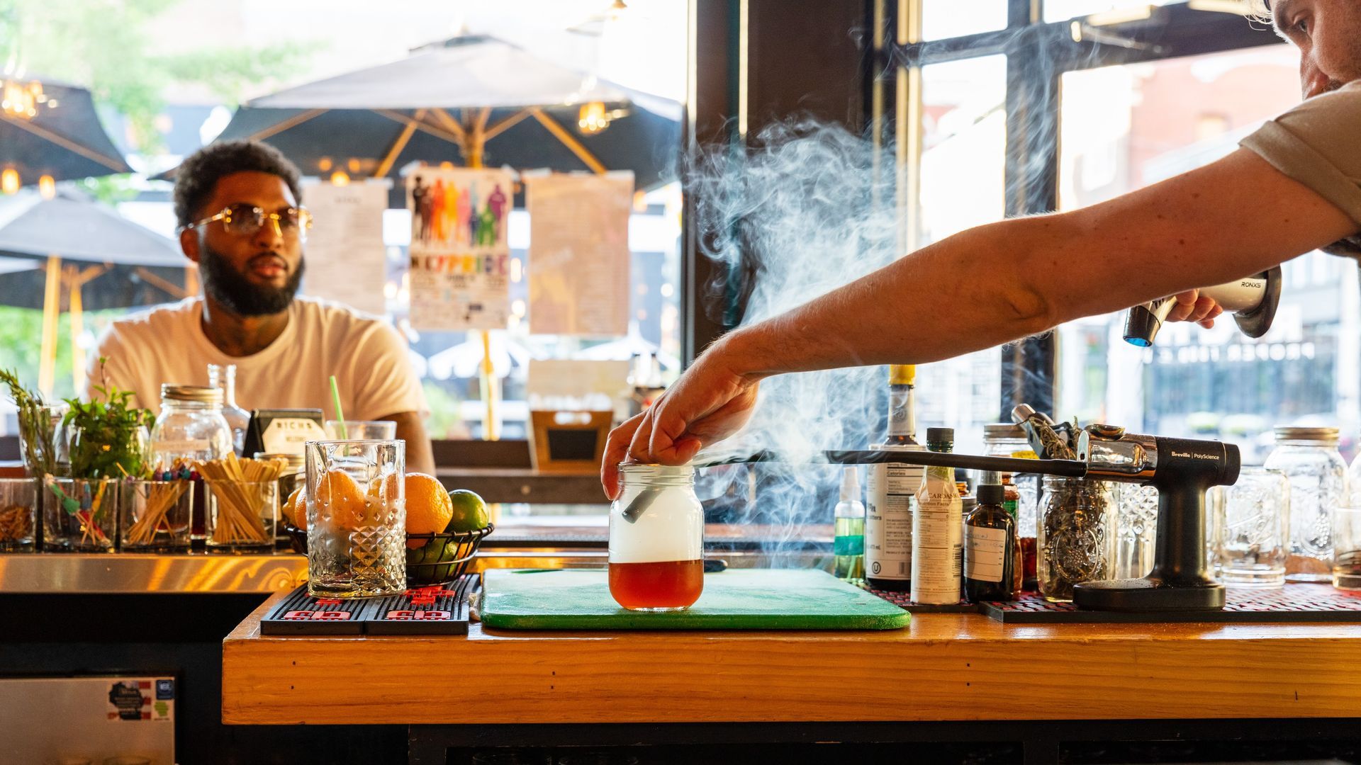 *The maple syrup used in this award-winning cocktail is smoked and infused with clove, cardamon, and vanilla then torched to caramelize it. Though it will yield different results, home bartenders can substitute pure maple syrup for a drink that’s still delicious with lower risk of fire.