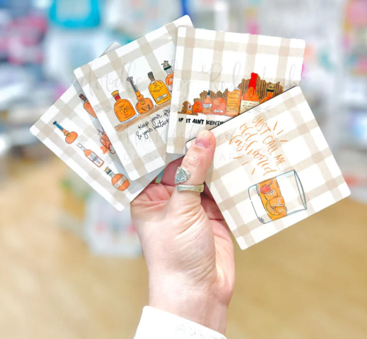 Doodles by Rebekah is a fun poke-around shop with a variety of items showcasing the artwork and hand-lettering of the owner-artist. Pick up a Bourbon Coaster Set ($20), a four-pack of bourbon themed coasters brandishing four distinct designs. So cute! They come wrapped with twine for ready gift giving, too.